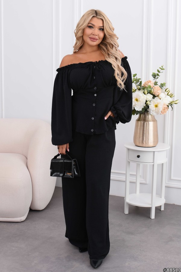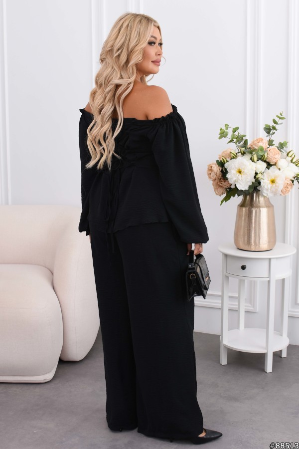 Штани мають високу посадку .На спині шнурок , тому можна регулювати талію та об'єм грудей