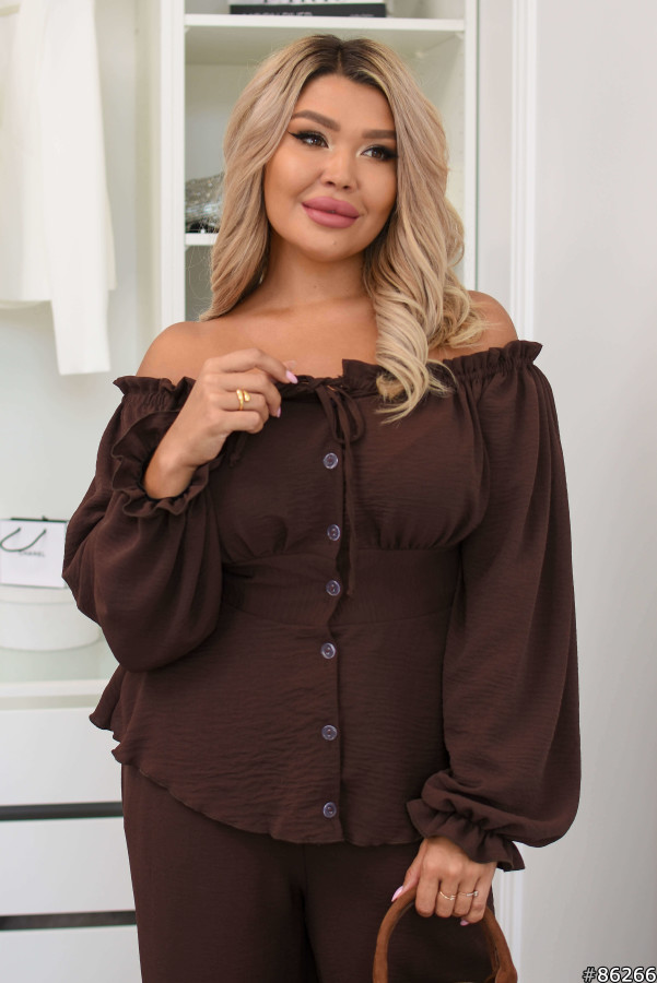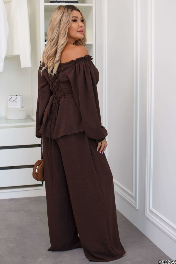 Штани мають високу посадку .На спині шнурок , тому можна регулювати талію та об'єм грудей