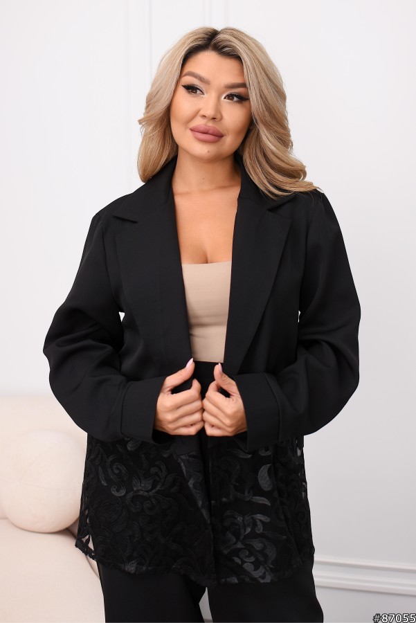 Тканина: креп-костюмна тканина+сітка з вишивкою