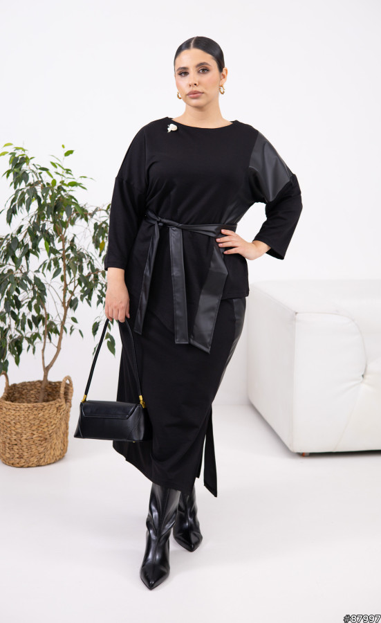 Спідниця має пояс на резинці.Брошка в комплекті.Тканина має гарну розтяжність, приблизно +6 см до вимірів.