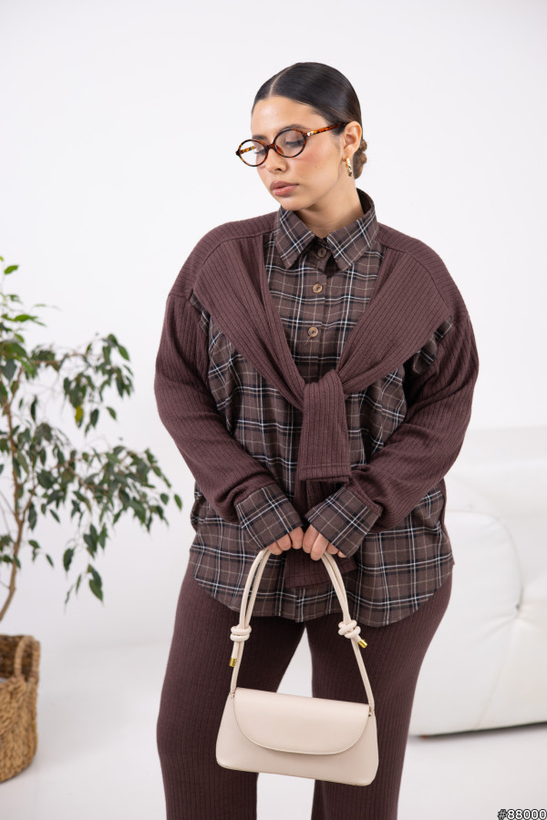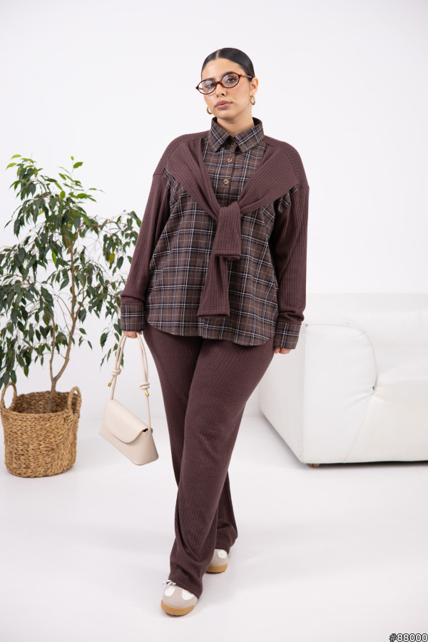 Сорочка: Турецька фланель + ангора рубчик гарної якості.Штани: ангора рубчик, добре тягнеться.Сорочка вільного крою, з декоративними рукавами.Штани на резинці по поясу.