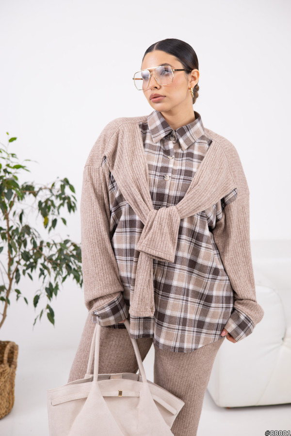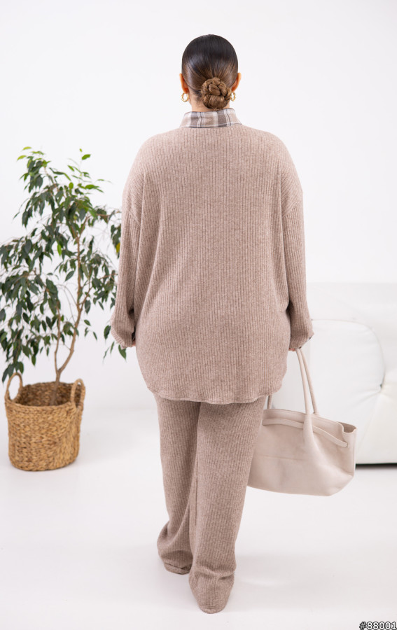 Сорочка: Турецька фланель + ангора рубчик гарної якості.Штани: ангора рубчик, добре тягнеться.Сорочка вільного крою, з декоративними рукавами.Штани на резинці по поясу.