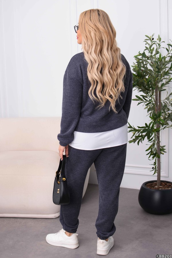 Кофта оригінального крою з ґудзиками ,виконана з трикотажу двонитки з додаванням білого супер софта на комірі та знизу з імітацією сорочки.