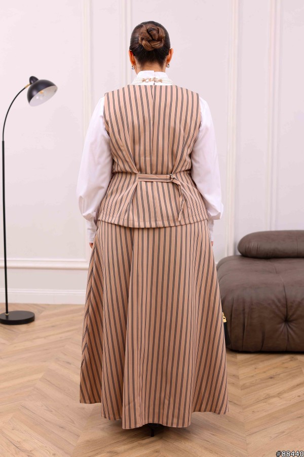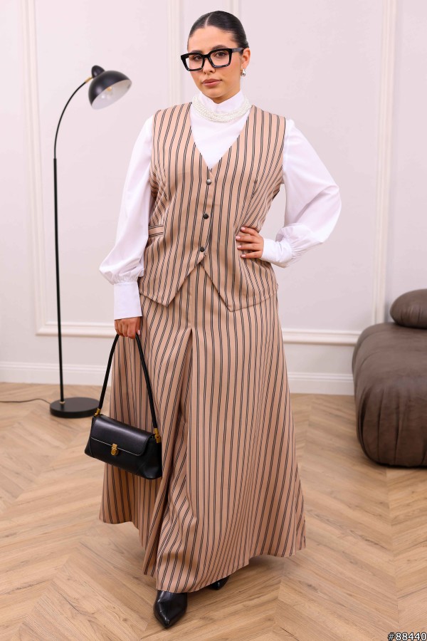 Жилет та подовжена спідниця з бічними кишенями. Пояс позаду на резинці. Без підкладу.