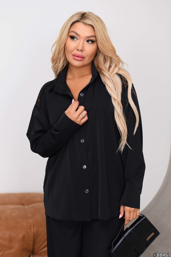 Сорочка на ґудзиках, комір стійка, по спинці вставка кружево.Тканина: Кристал+Італійське кружево