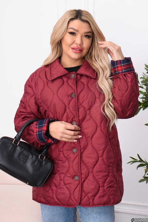 Тканина: плащова стьобана.На ґудзиках.Утеплювач: синтепон 100.Внутрішні манжети з картатої тканини
