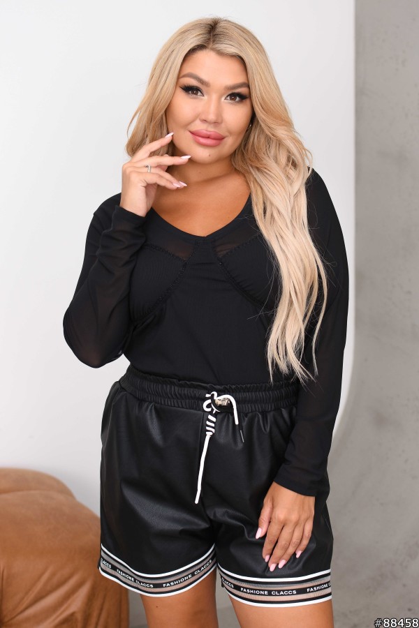 Базовий лонгслів із декоративними рельєфами по грудях. Верх лонга і рукова виконаний якісною стрейч сіткою.