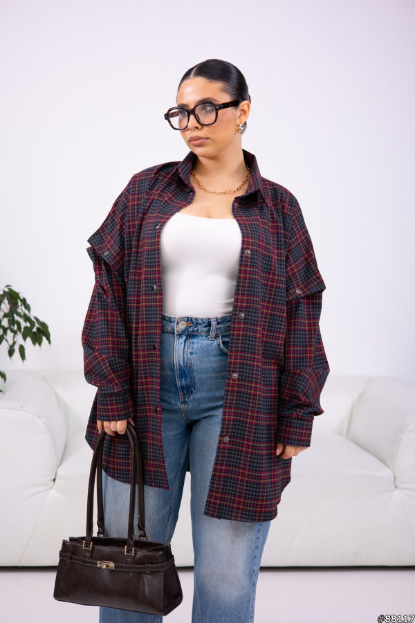 Сорочка в клітинку з відстібними рукавами.Сорочка трансформер.Рукава на кнопці.