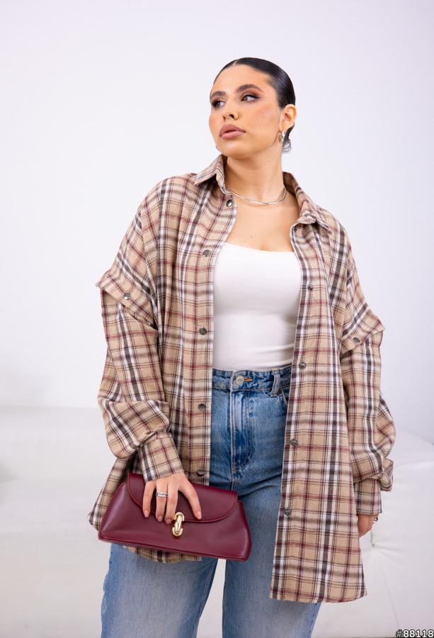 Сорочка в клітинку з відстібними рукавами.Сорочка трансформер.Рукава на кнопці.