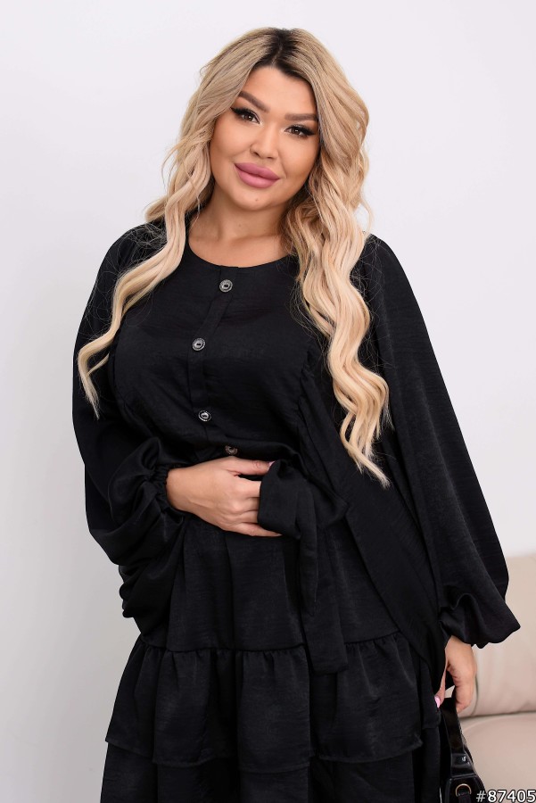 Зверху застібка на ґудзики спереду.Спідниця з двома ярусами воланів, які створюють об’єм та динаміку.