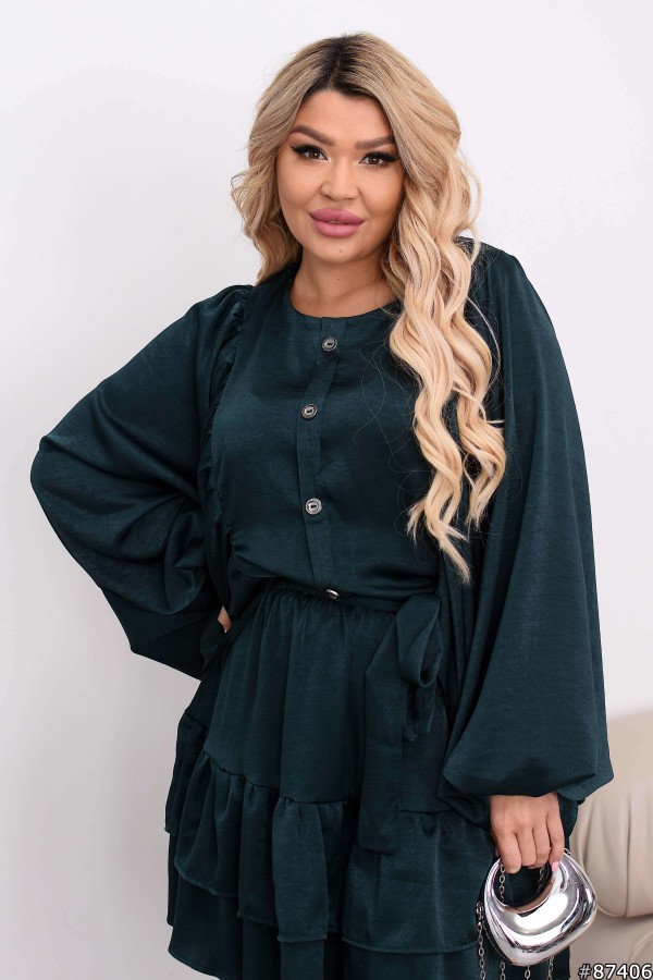 Зверху застібка на ґудзики спереду.Спідниця з двома ярусами воланів, які створюють об’єм та динаміку.